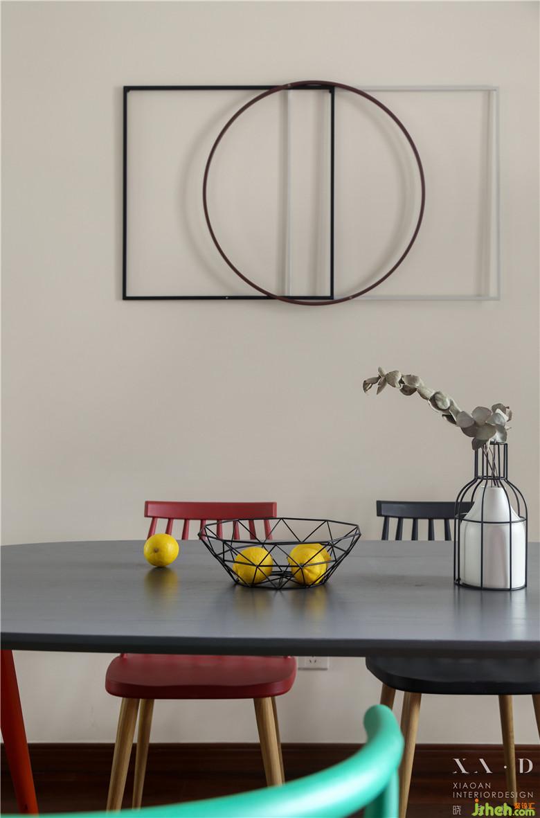 室內(nèi)設(shè)計師使用黑木餐桌與紅色餐椅相互襯托,待到廚房一通忙碌之后,餐桌上擺放可口飯菜,知足感油然而生。