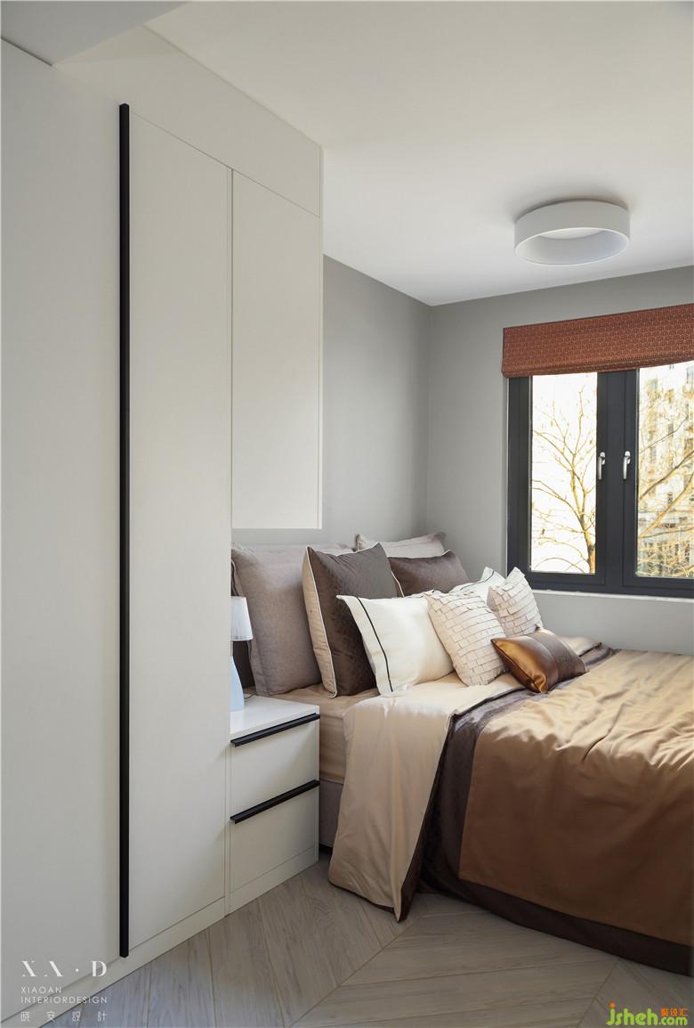 次臥在預(yù)了一米八床之后,其余空間充分考慮到收納,將原有儲(chǔ)物間的部分區(qū)域定制了柜子。