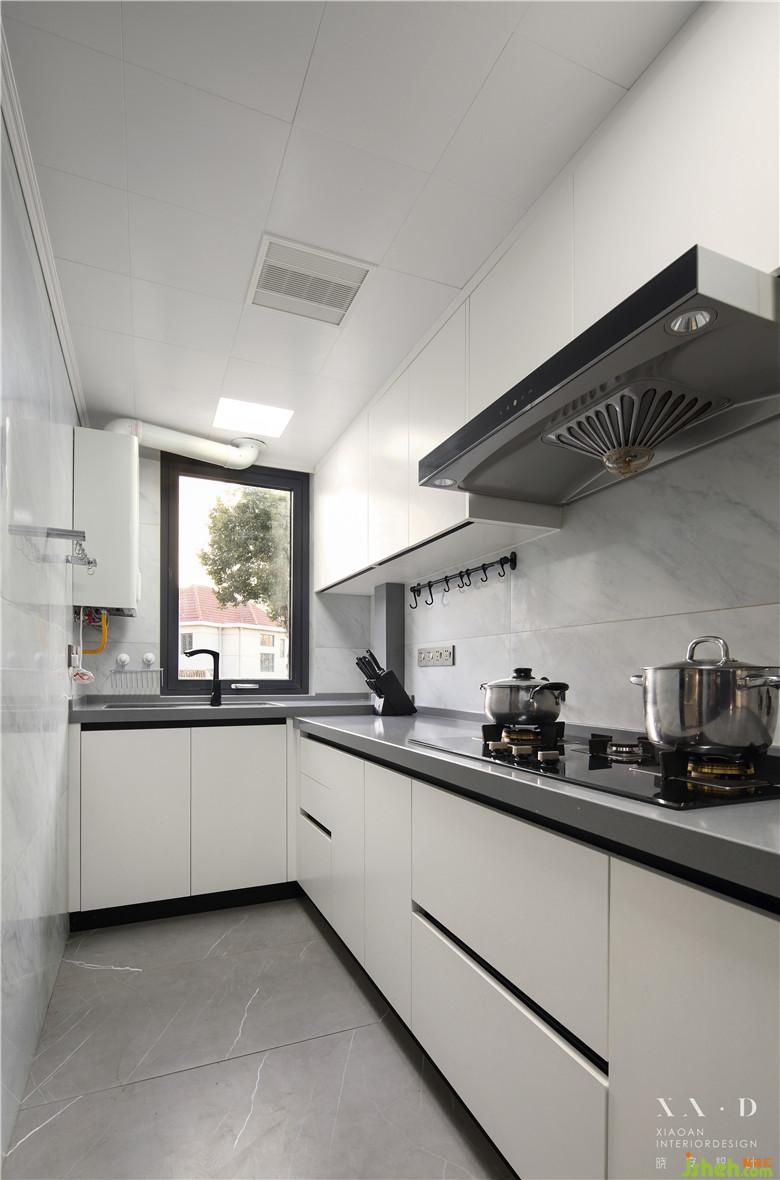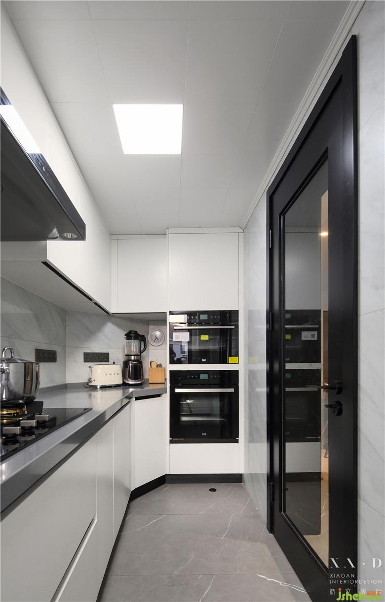 室內(nèi)設(shè)計(jì)師拆除了之前的儲(chǔ)物間,預(yù)留入戶鞋柜,將原計(jì)劃放在廚房的冰箱改在鞋柜的邊上,為了外觀上的統(tǒng)一,選擇了內(nèi)嵌式的冰箱。