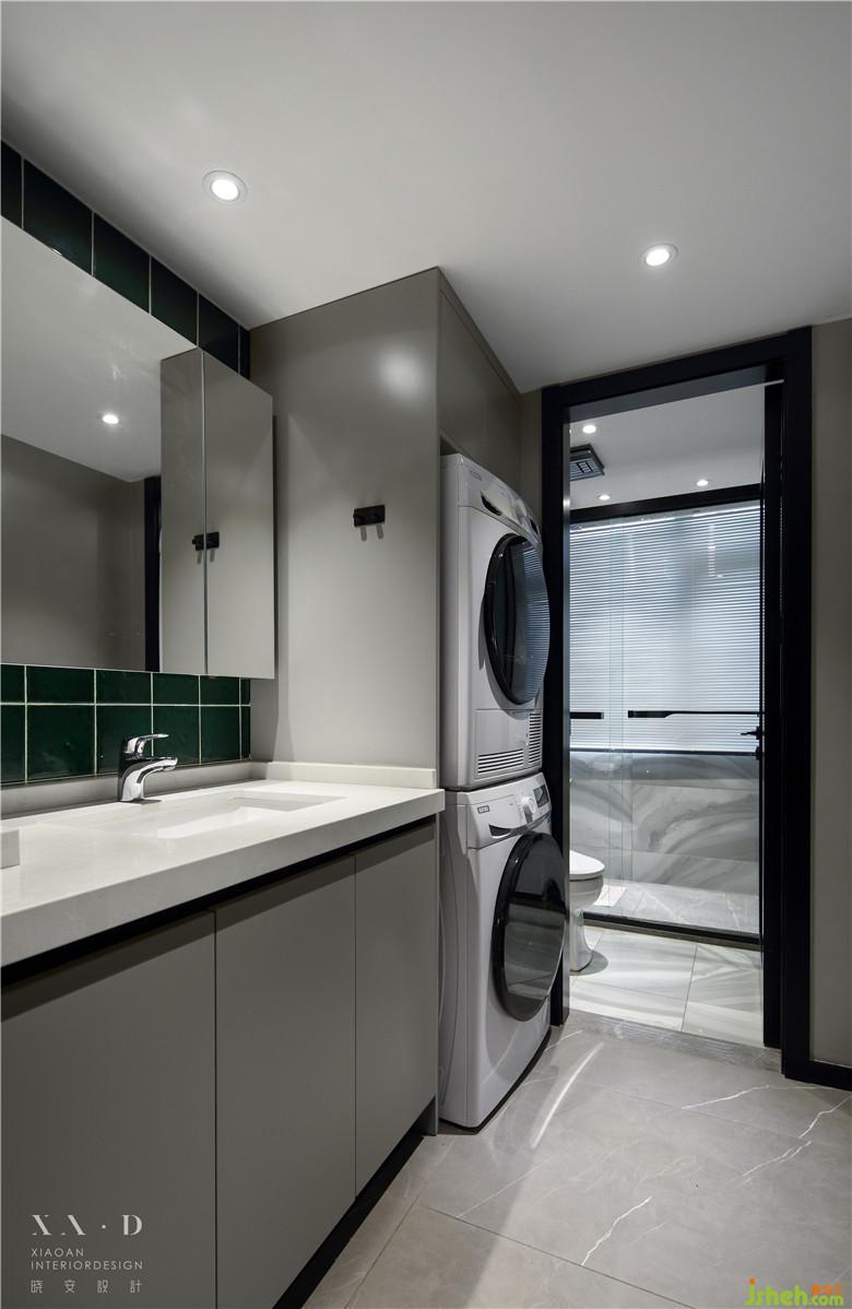 洗衣空間放置在外衛(wèi)的干區(qū),不影響淋浴等功能區(qū)的使用。