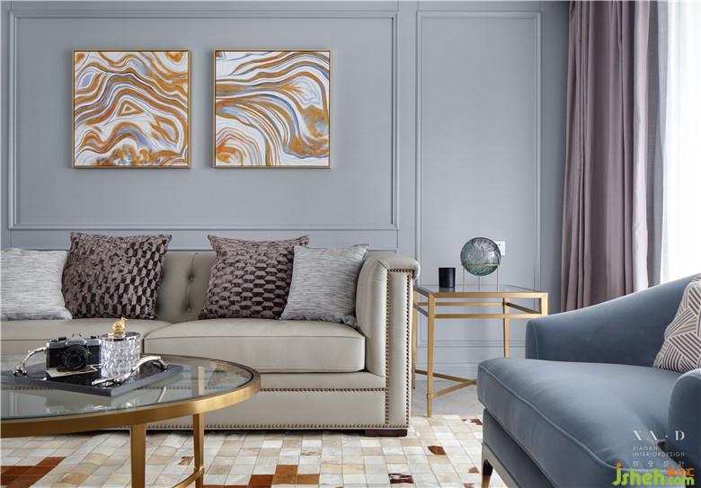客廳中性而低奢的黃銅點綴于備受青睞的高級灰空間中,使得整體空間寧靜而又高雅。