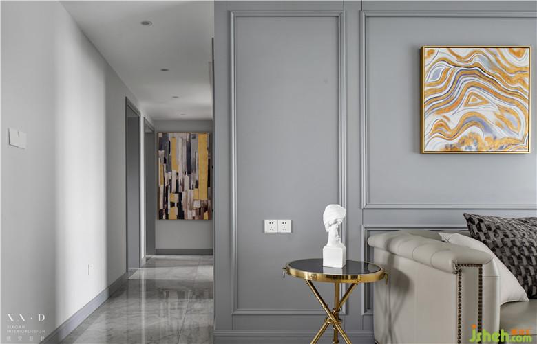 在前期的溝通中,女主喜歡美劇電視中的壁爐,既溫馨而又優(yōu)雅,希望在新家里加入這個(gè)元素,室內(nèi)設(shè)計(jì)師將電視與壁爐的造型結(jié)合,完美的融合于空間。
