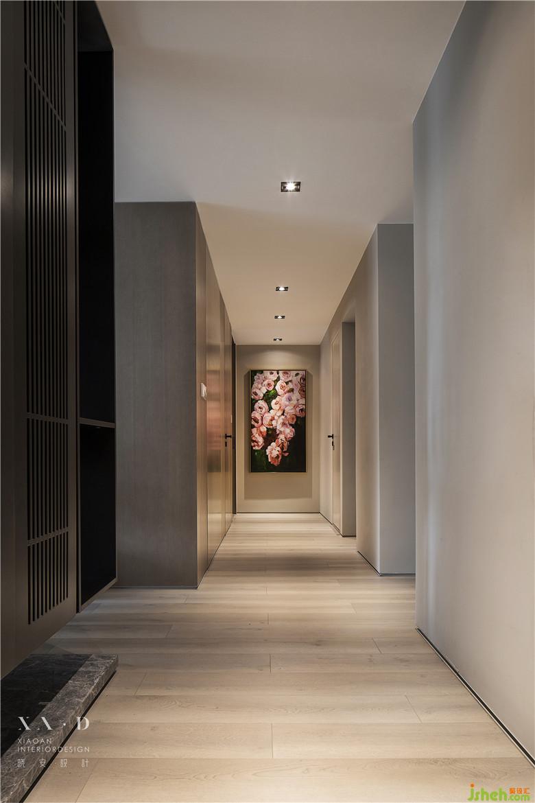 入戶玄關(guān)的位置,室內(nèi)設(shè)計(jì)師增設(shè)了一組雙排的懸空鞋柜,補(bǔ)強(qiáng)收納功能的同時(shí),明確劃分出玄關(guān)的位置,有效的區(qū)隔了客廳與玄關(guān)的空間。運(yùn)用園林設(shè)計(jì)中隔則深的表現(xiàn)手法,結(jié)合鞋柜的部分,專門(mén)設(shè)計(jì)了端景展示的空間,隨著季節(jié)時(shí)令的變化,插上不同的花束,四季有變,美好長(zhǎng)存。