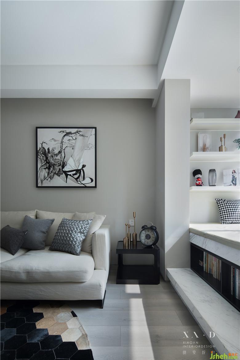 客廳的窗戶是連接大廈裙樓露臺(tái)的通道,室內(nèi)設(shè)計(jì)師將原有的小陽(yáng)臺(tái)設(shè)計(jì)成了座榻的形式,設(shè)置大量的存書(shū)空間,早晨,午后,傍晚這里都是絕佳的休閑所在,品茶,讀書(shū),發(fā)呆,樂(lè)在其中...