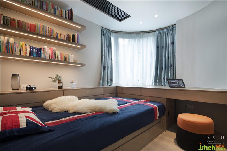 因為孩子還在國外留學(xué),所以兒童房的使用概率比較低,這也是我們選擇將臥室和餐廳空間互換的原因。這個空間依然沿用了綜合多項功能的設(shè)計,衣柜、書架、書桌、臥床,一個融入多種功能綜合體的設(shè)計,擴(kuò)大了數(shù)倍的收納存儲功能。