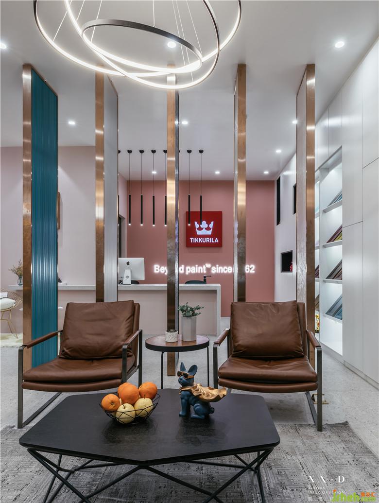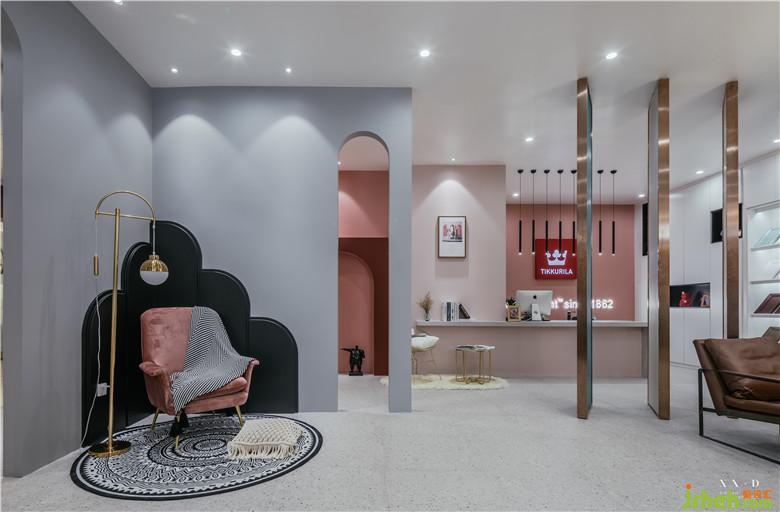 室內(nèi)設(shè)計(jì)師在做這個(gè)店面設(shè)計(jì)之前一直在思考,店面設(shè)計(jì)應(yīng)該是這么做?因?yàn)檫@個(gè)是一個(gè)知名品牌的乳膠漆店鋪,對(duì)于設(shè)計(jì)風(fēng)格來說沒有過多的局限,我在想不要做成普通的涂料店鋪直接物料擺放的感覺,希望從空間上給進(jìn)來消費(fèi)的顧客以一種欣賞的心情來選購(gòu)自己未來家里需要用的乳膠漆。在動(dòng)線設(shè)計(jì)上考慮到兩邊各有商場(chǎng)的過道,所以設(shè)計(jì)了兩個(gè)出入口,讓空間更具有包容性。