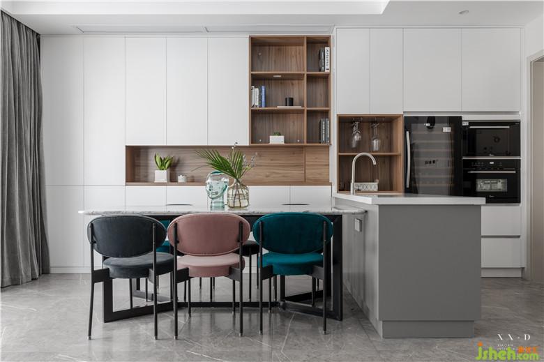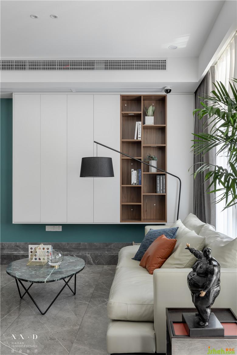 客廳空間整體色彩,明快輕松。沒有被傳統(tǒng)局限,根據(jù)家人的生活習(xí)慣,設(shè)置成平時(shí)喝茶、看書的地方。沒有大體量的家具阻隔空間,讓客廳與餐廳相連,擴(kuò)大視覺效果。