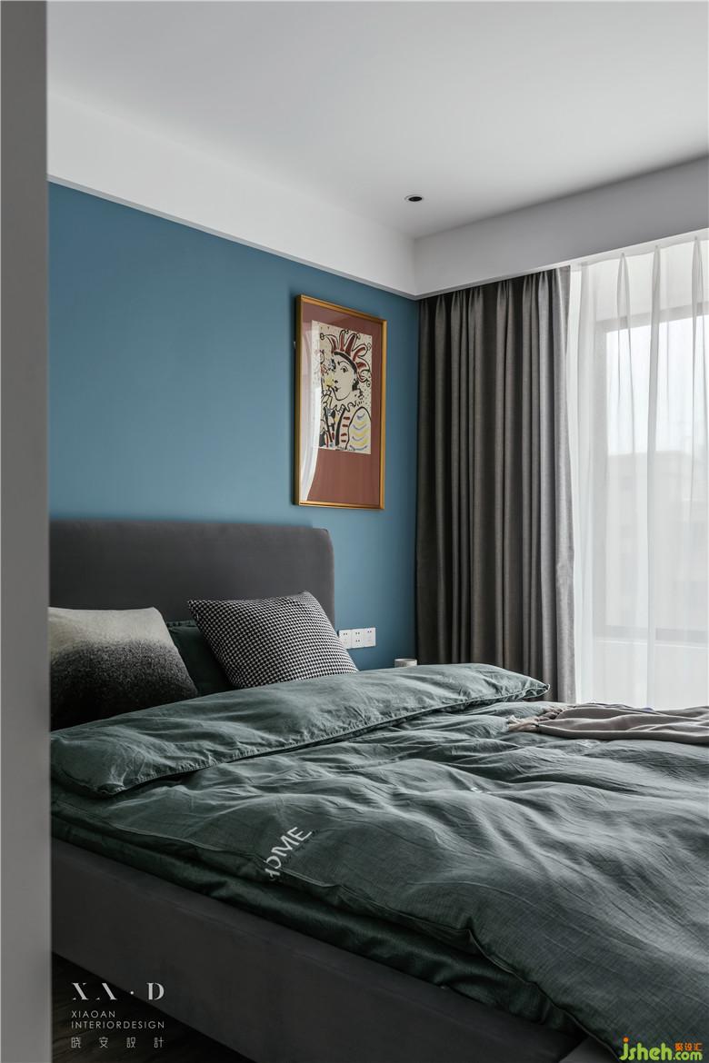 沿用客餐廳的藍(lán)灰色,作為整個(gè)空間的點(diǎn)綴色,用灰色的飾品和窗簾組合,層次感、精致感并存。