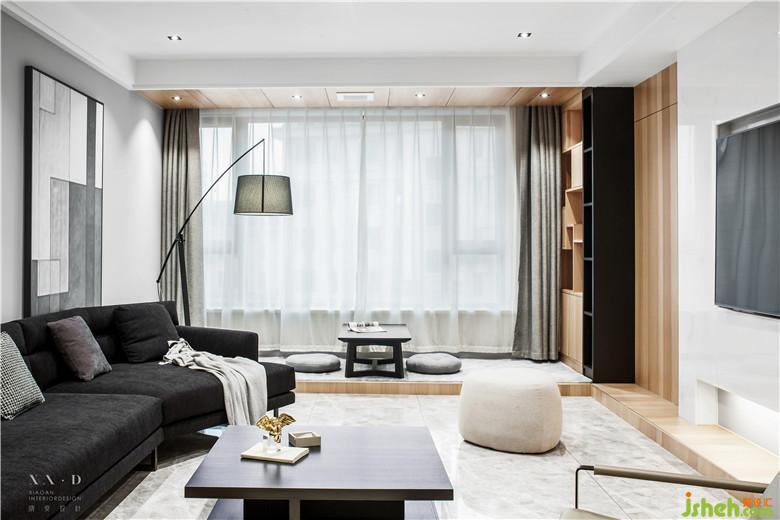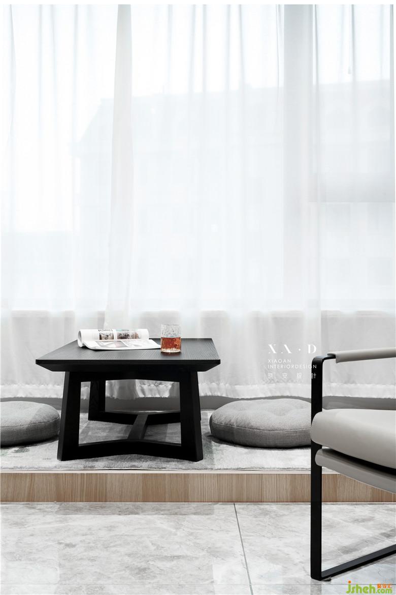 客廳的背景選用的是大理石,下面用木飾面做了地臺,由于業(yè)主喜歡喝茶,所以室內(nèi)設(shè)計(jì)師把原有的陽臺直接改成了茶室,這樣整個(gè)茶室的地臺延伸到電視墻下,用地臺把茶室和電視背景墻聯(lián)系起來。