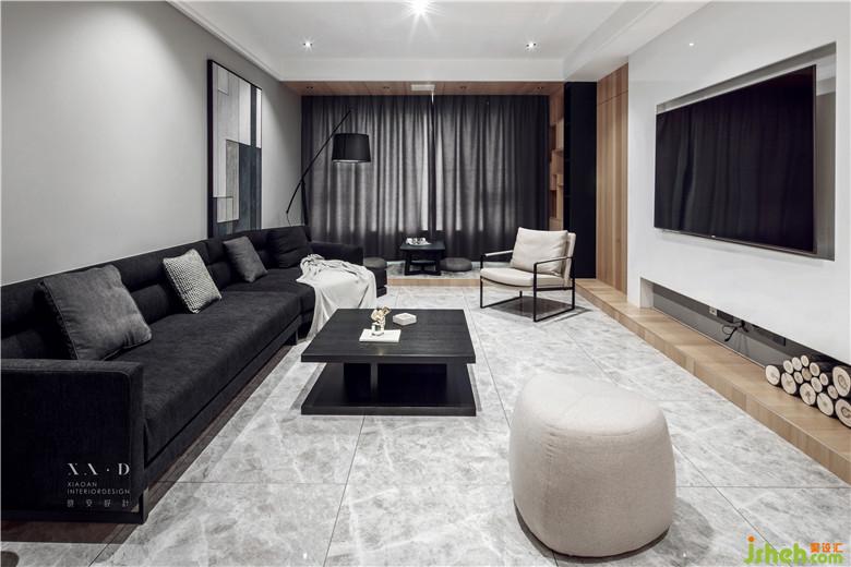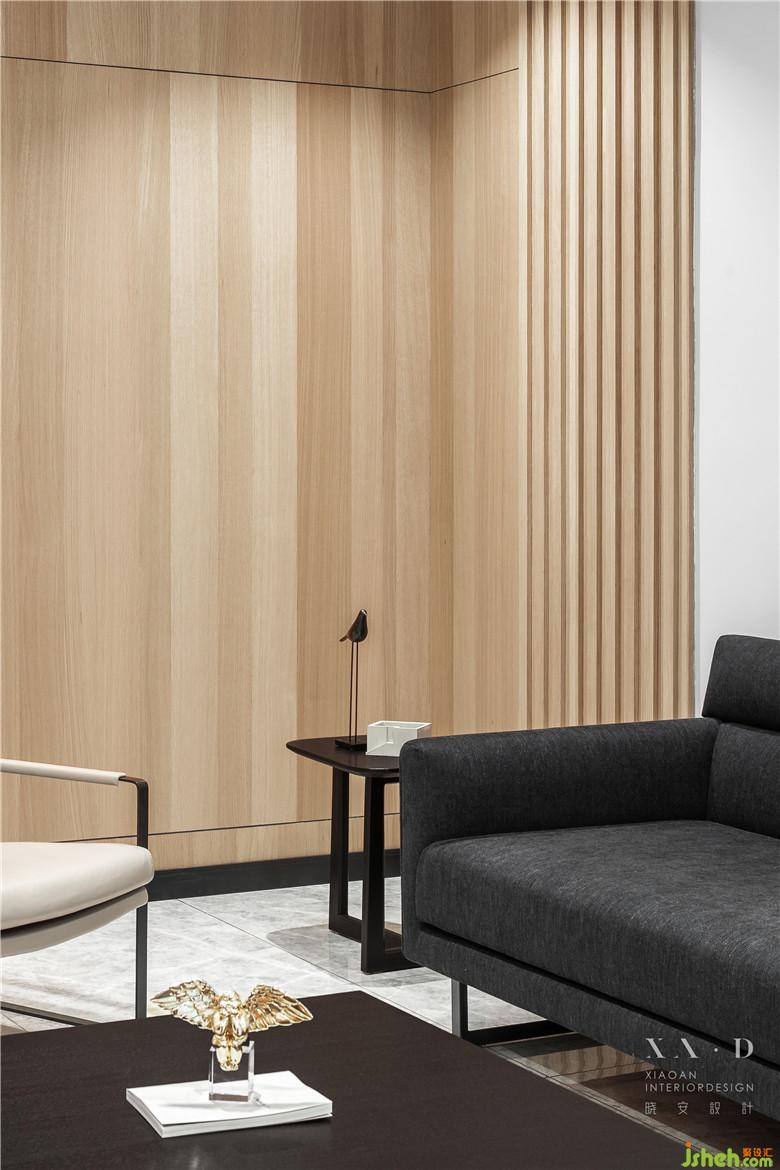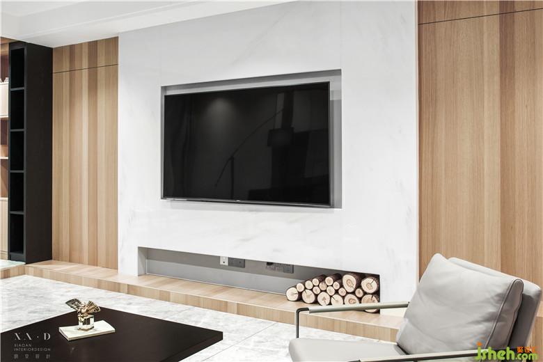 客廳和過道的中間因為有一堵承重墻體,設(shè)計的時候就考慮借助承重墻體做了一個長條的框,讓客廳和過道有一個連貫性。