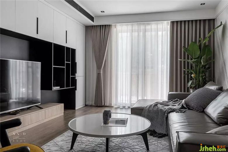 原戶型只有一個(gè)入戶門,因?yàn)槭且粯?,所以我們把原來南?yáng)臺(tái)的門悶掉直接融入到電視背景里,這樣整個(gè)電視背景在客廳中就很完整。