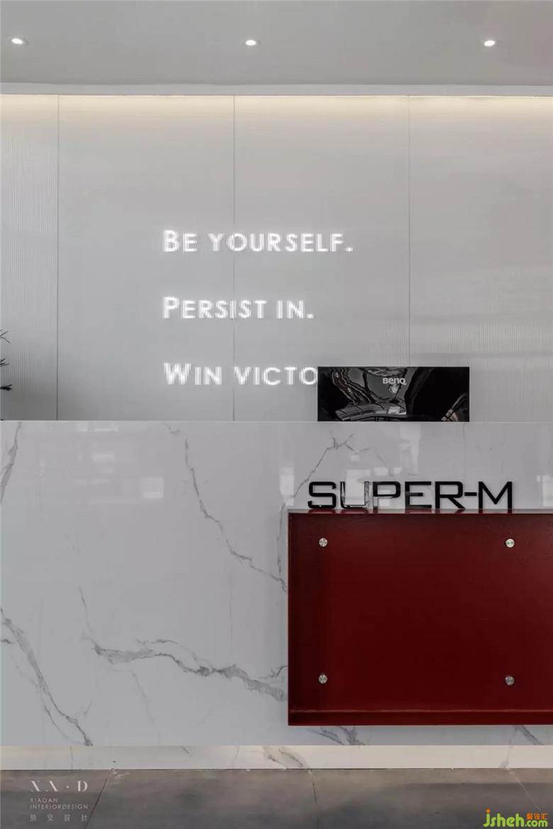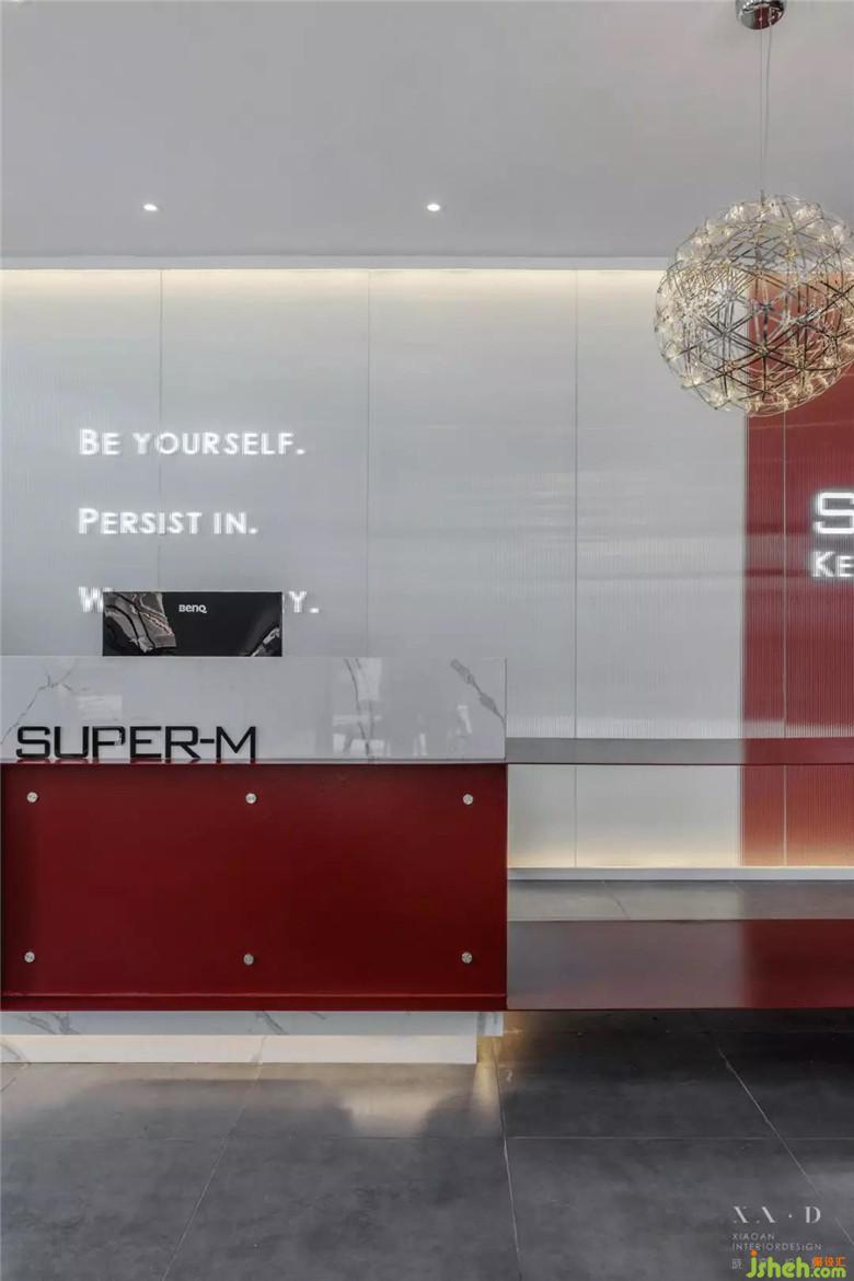 同樣被蓋住的還有SUPER-M的主題色—紅色。在主題色、LOGO、標語前加半透的藝術(shù)玻璃,其寓意是:你的個性,你的形象,你的氣質(zhì),都需要你經(jīng)過自己的努力,擊碎你眼前的阻礙,才能更好的展現(xiàn)在別人面前。健身也是如此。