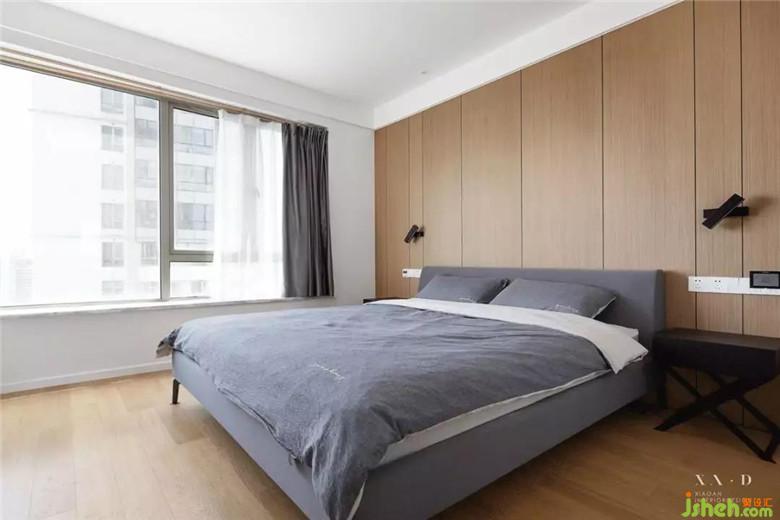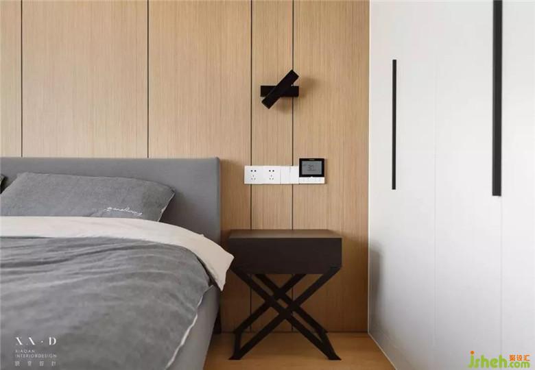 主臥室的風(fēng)景是最好的,坐在床邊就能看到美麗的金雞湖風(fēng)景??臻g上沒(méi)做過(guò)多的設(shè)計(jì),背景上使用了整面木飾面,木飾面的比例分割,預(yù)留的工藝縫使得空間溫馨又帶有現(xiàn)代的氣息??烧{(diào)節(jié)的床頭壁燈很好的解決了夜晚看書(shū)時(shí)所需要的照明。