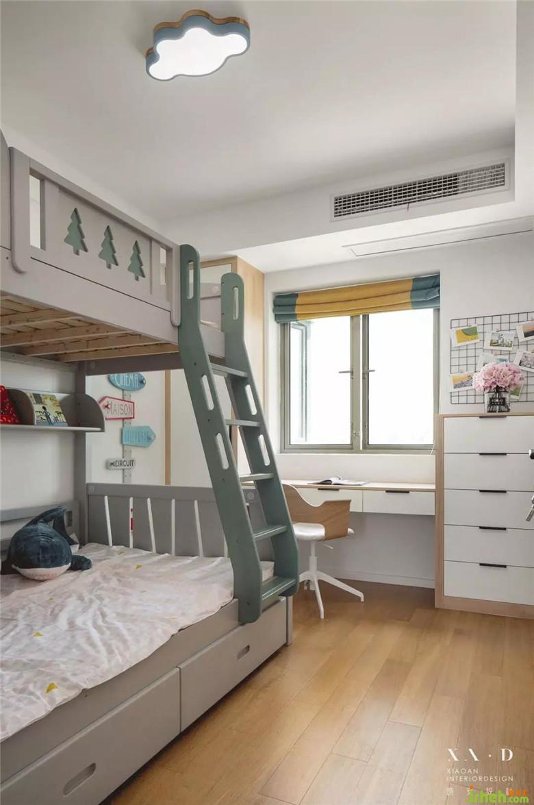 兒童房設(shè)計(jì)了上下鋪,因?yàn)閮蓚€(gè)寶寶還小,所以上下鋪是最好的選擇,使得兩個(gè)孩子有更多的接觸時(shí)間,增加彼此的感情。