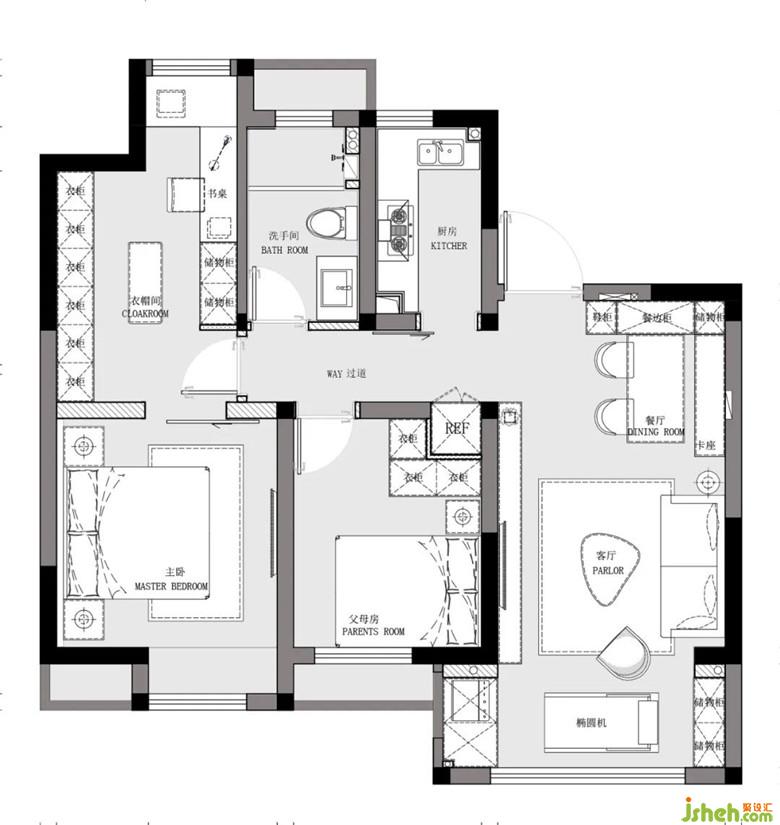 ▲ 穩(wěn)重與輕靈在這片區(qū)域相輔相成,恪守著一份靈動與潔凈。
