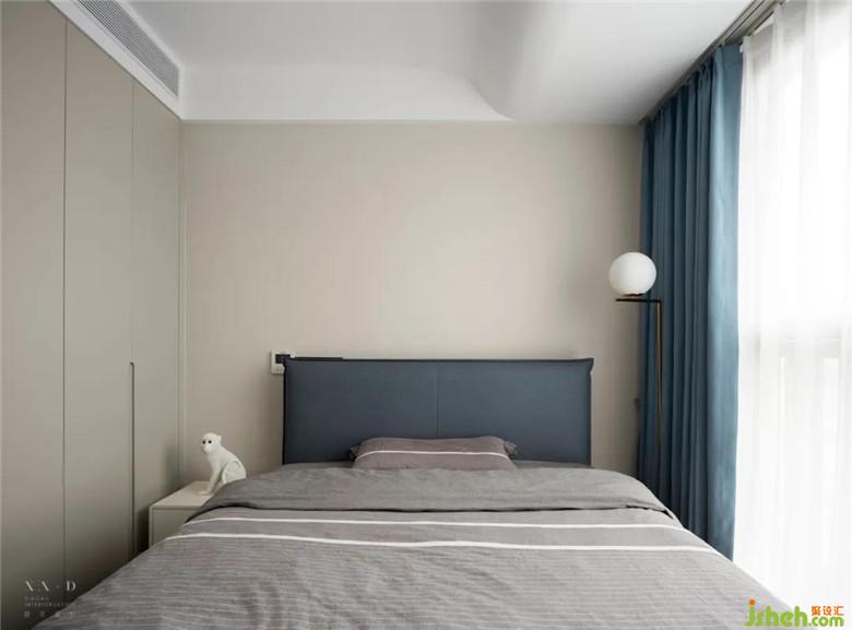 一個L型的小空間里,次臥中的功能性與空間藝術性,都有著周到的安排。大面積的淺淡色彩,裝修公司把空間無限延展開。加入了暗調的白,顯得更加柔和而不刺眼。明亮的天光下,窗簾的藍托起一片晴朗藍天。