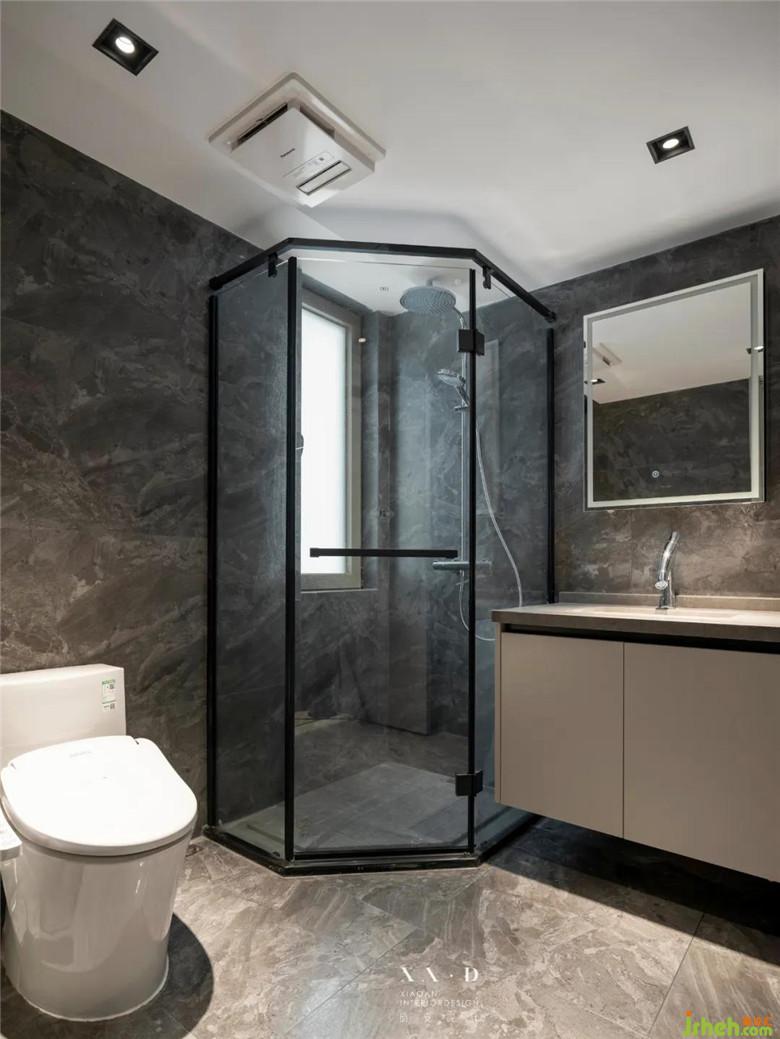 相比起其它的空間,浴室內面積較小,但要實現(xiàn)的功能性又最多,所以浴室的規(guī)劃非??简炘O計師的功底。裝修公司利用轉角將玻璃門的邊角變柔和,實現(xiàn)了干濕分離的同時,又將空間的割裂感一筆勾銷,安全感油然而生。