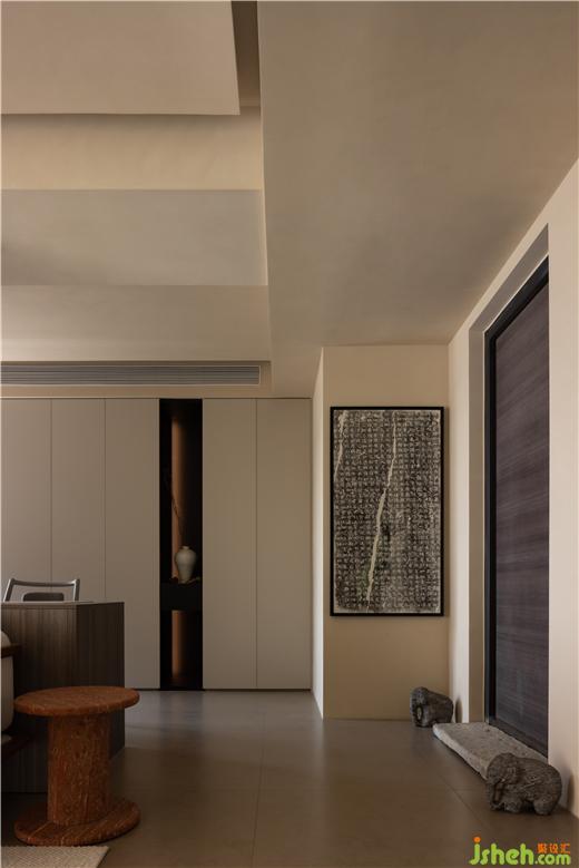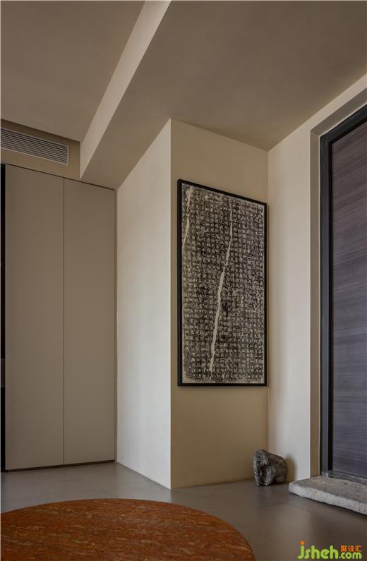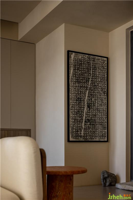 門口的東山之石、兩側(cè)的青石象、墻上的碑拓,都是男主人的收藏,運(yùn)河與岸裝修設(shè)計(jì)有的是機(jī)緣巧合下淘來(lái)的老舊物件,有的是想方設(shè)法才覓得的心頭好,第一眼看到它們就覺(jué)得很有眼緣,這些合乎心意、情有獨(dú)鐘的物品,構(gòu)成了獨(dú)一無(wú)二的玄關(guān)。