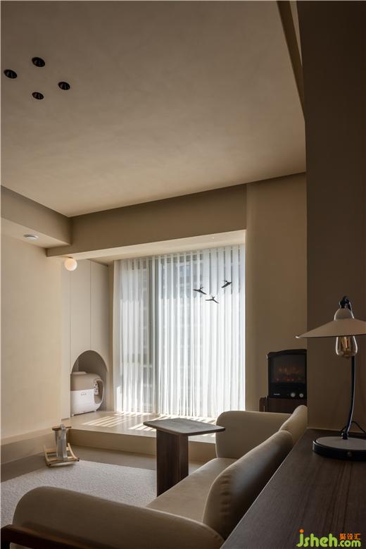 地臺向電視背景蔓延,實現(xiàn)呼應(yīng)的節(jié)奏與秩序,勾勒拱形建造貓咪私屬空間,模糊人與寵物生活的邊界。運河與岸裝修設(shè)計以球形壁燈“召喚”飛鳥裝飾,縈繞出悠遠(yuǎn)輕靈的空間意境。