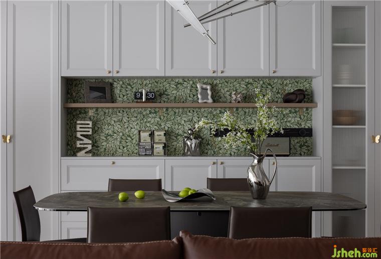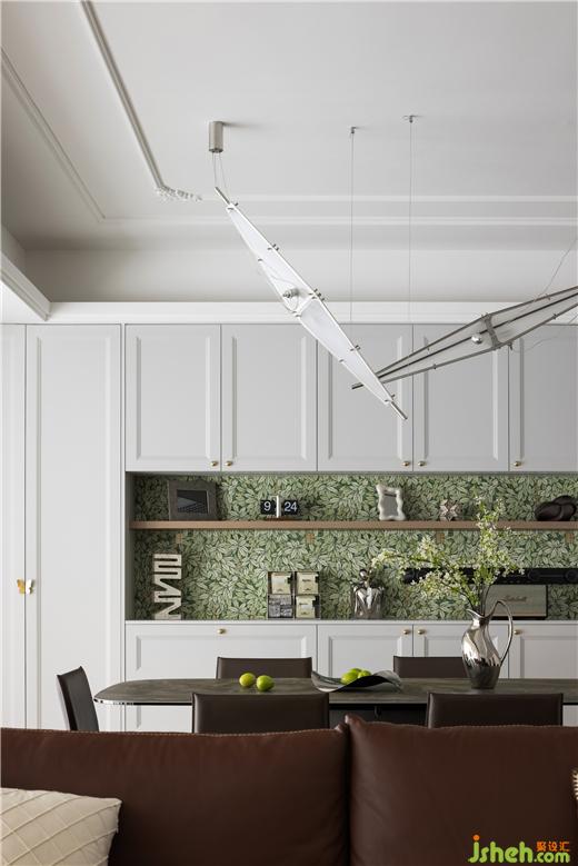 千鳥格沙發(fā)佇立一旁,等待著主人歸來,為他滌去一整日的疲憊。淺綠色的花磚與綠植相呼應(yīng),天鵝港豪宅設(shè)計為空間潤色,恰如其分地展現(xiàn)了法式的精致與清新。每天打開窗簾,就能夠感覺到身心舒暢。