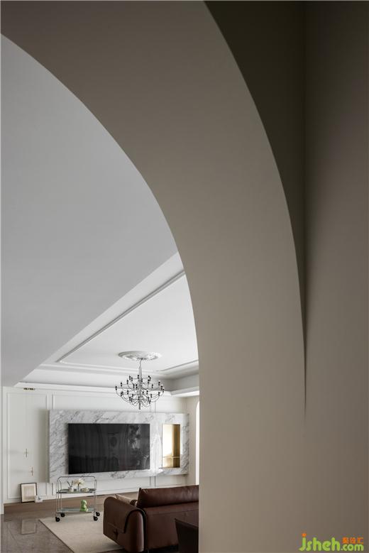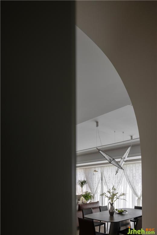 通達的動線設計,使得日常起居擁有簡明高效的行動路徑。拱門,是睡眠與活動空間的隱性分界線,讓空間過渡變得自然流暢,并且?guī)砹私^佳的光影明暗對比,透過拱門看去,家的溫馨美感仿佛被框進油畫里。
