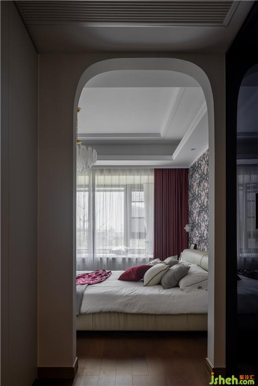 “夢里想去的地方,風(fēng)總是先我一步抵達?!钡溲诺纳罴t色,像一杯紅酒,在懸垂的吊燈、柔美的窗簾、溫暖的抱枕、舒適的毛毯中流淌,讓人感受到生活的雅致和高貴。天鵝港豪宅設(shè)計以經(jīng)典的繁花作為床頭背景,又在局部通過白色羽毛燈馭繁于簡,展現(xiàn)靜謐。