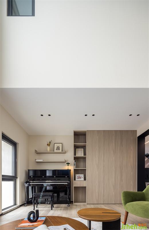 一面挑空賦予熱帶葉片肆意生長的尺度,構(gòu)筑出夢中意境,令人自由呼吸、暢意遐想。一面回歸日常,迎接音樂的飛揚(yáng)意象,復(fù)式裝修設(shè)計(jì)以實(shí)景轉(zhuǎn)述“看不見、摸不著”卻總吸引人的空間頻率。