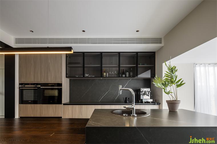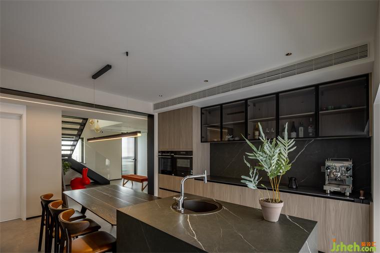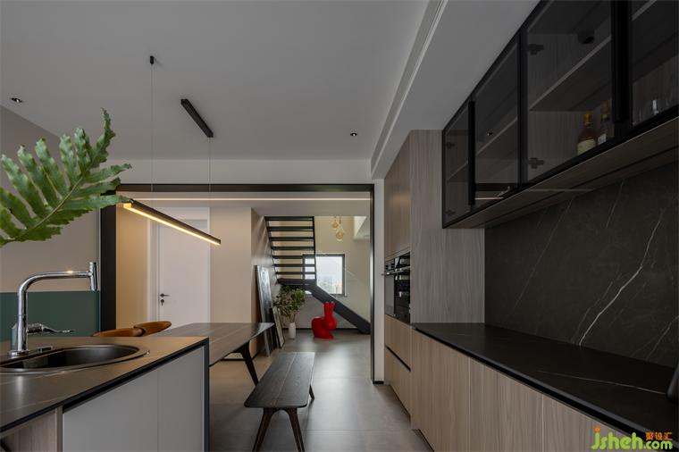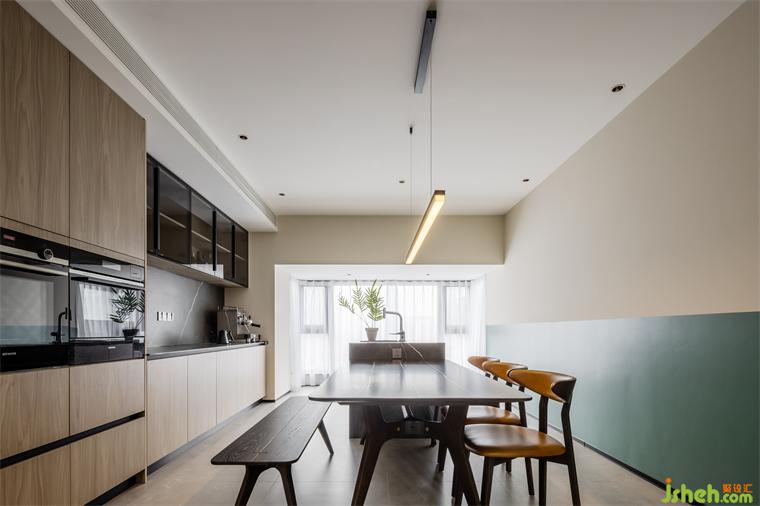 依架構(gòu)特征與采光程度,在實(shí)用性的基礎(chǔ)之上容納自然氣息,擴(kuò)展生活的想象力、靈活度、自洽感。運(yùn)用大面積木質(zhì)與高雅大理石確立場域型格,用跳色元素展露生機(jī)與趣味。