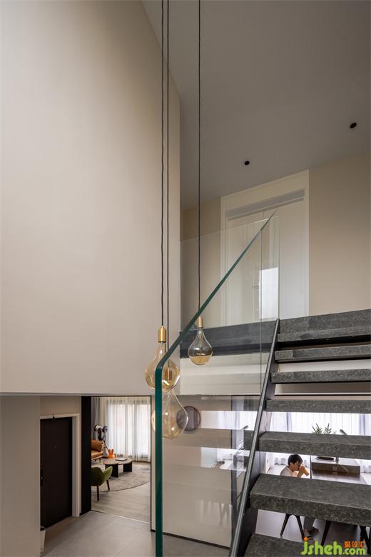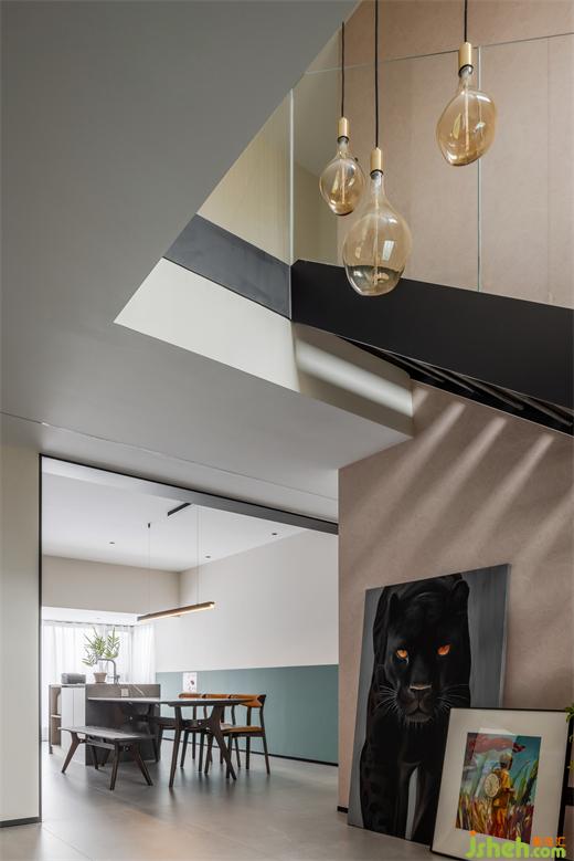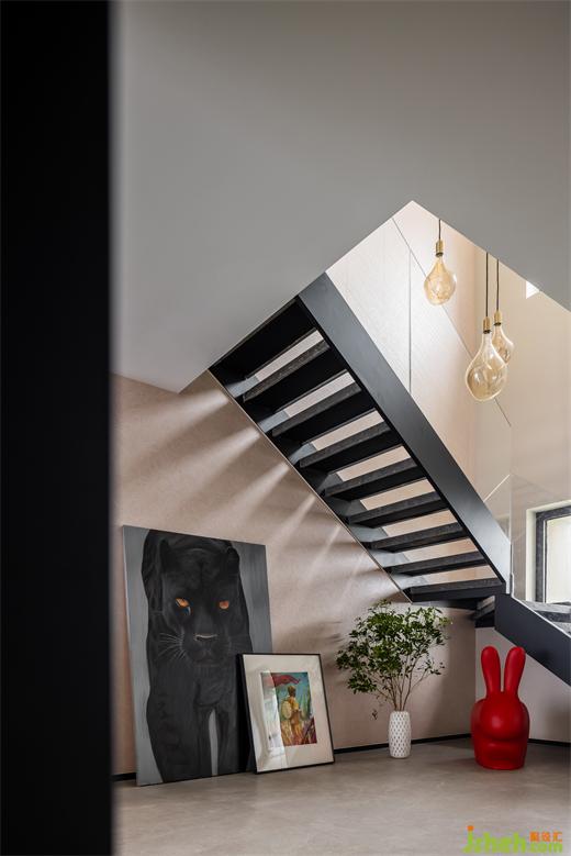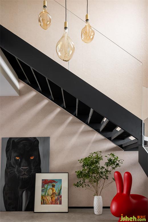 結(jié)構(gòu)折轉(zhuǎn),光影變幻,創(chuàng)造了新鮮有趣的空間互動,根植藝術(shù)的愉悅性與空間的穩(wěn)定性,以連綿的黑串聯(lián)上下維度。圍欄的剔透扭轉(zhuǎn)了昏暗氣氛,激活了明朗的格調(diào)。