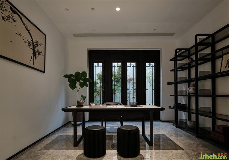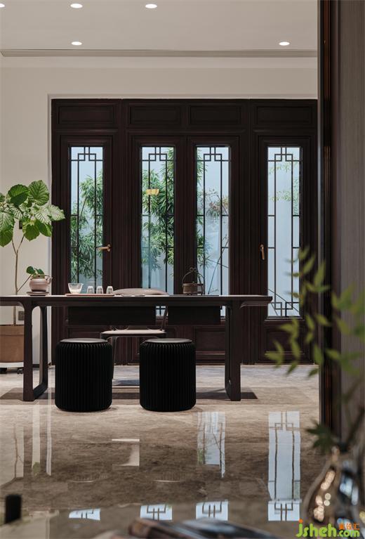 曲徑通幽處,無(wú)言詩(shī)意美。一排架,一幅畫(huà),使空間的縱深匯集于遠(yuǎn)景,透過(guò)紋理的修飾,別墅裝飾將植物的生命力納入茶盞之形,分次品茗,細(xì)嗅清香,契合了精神向往。