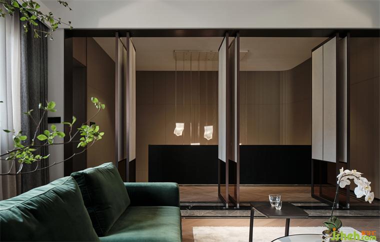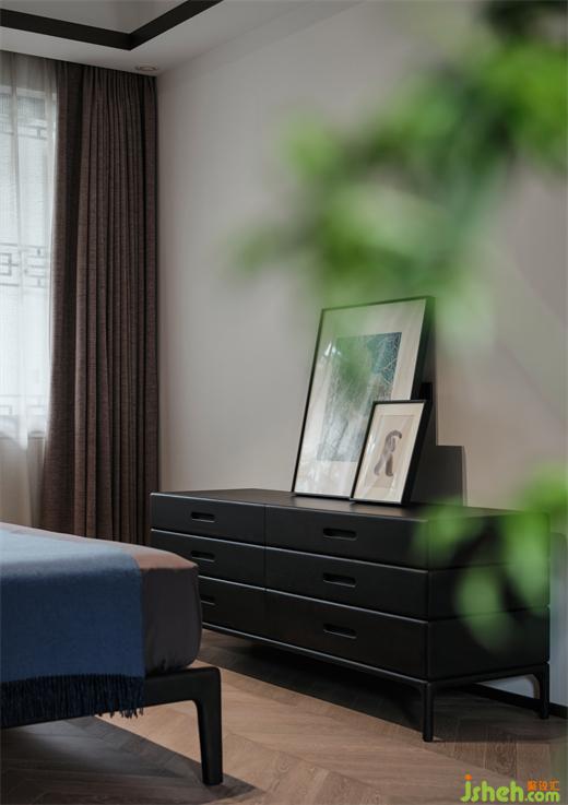 臥室的色調(diào),道不清說不明,有一種“天未落雨、墜枝含蘊(yùn)”的意境。直線,或傾斜,或垂立,旨在緩和重色的壓抑感,別墅裝飾營造舒睡氛圍。暖融的光,撫平了緊繃的精神,亦形成了視覺焦點(diǎn)。