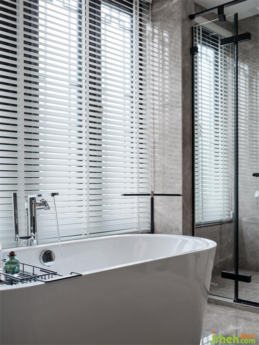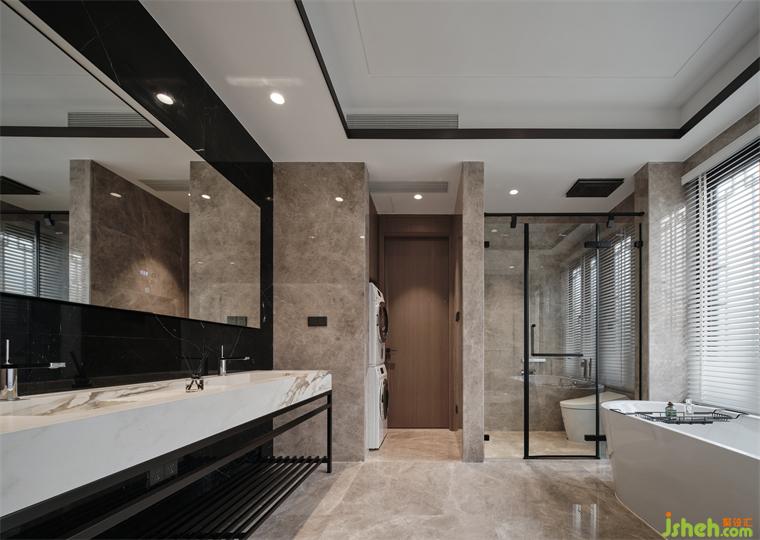 衛(wèi)生間內(nèi),干濕分明,功能俱全。入目所及,一切物品的關(guān)系都圍繞著“空靈”“自然”“藝術(shù)”等概念進(jìn)行變化、融合、共鳴,曲線和光影打破了空間的秩序,令人更加放松起來。