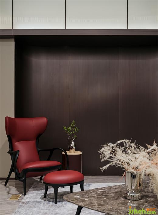 勁松于斜角與時光對語,散發(fā)勃勃生機;點綴輕盈朦朧的形態(tài),隔空連接了自然意境;一抹赤豆紅調,隨心而雅。細膩的設計帶我們領略美學韻致,靜靜地、慢慢地品閱生活散發(fā)的恬淡芬芳。