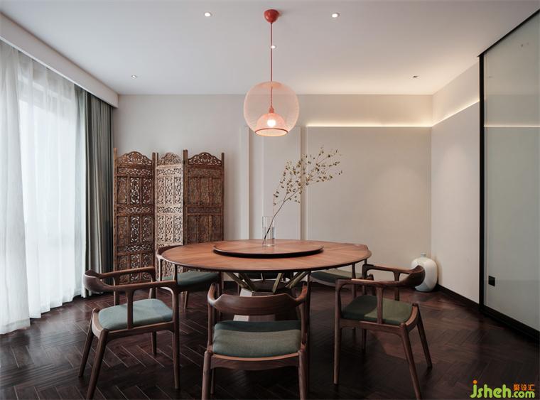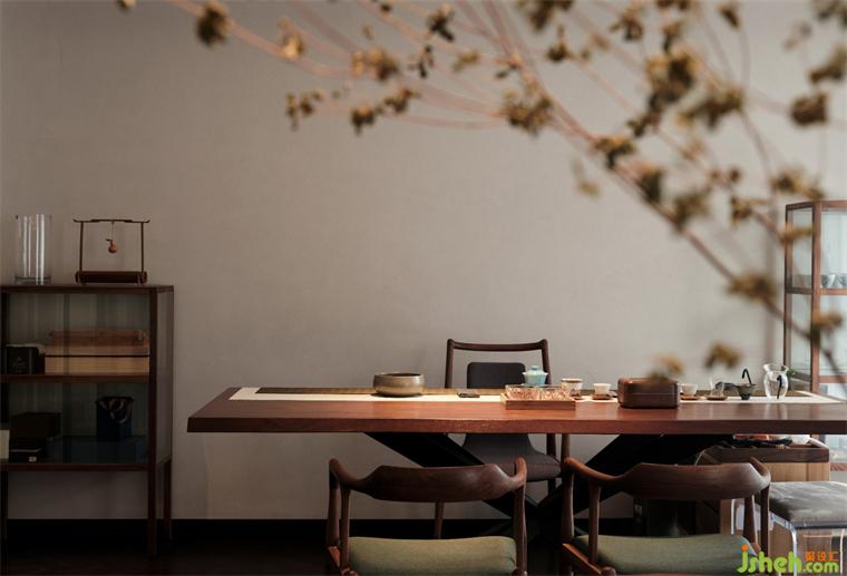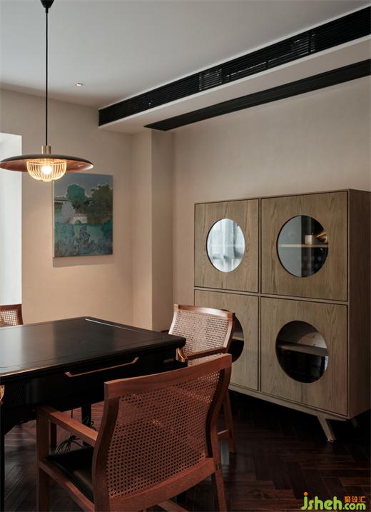 二樓是舉行家宴、喝茶、娛樂的地方,身在城,心在野,煙火氣,家人情便寄托在此處。簡潔的墻面,深色的地板襯托著棕色的家具,彰顯主人的大氣與雅致。