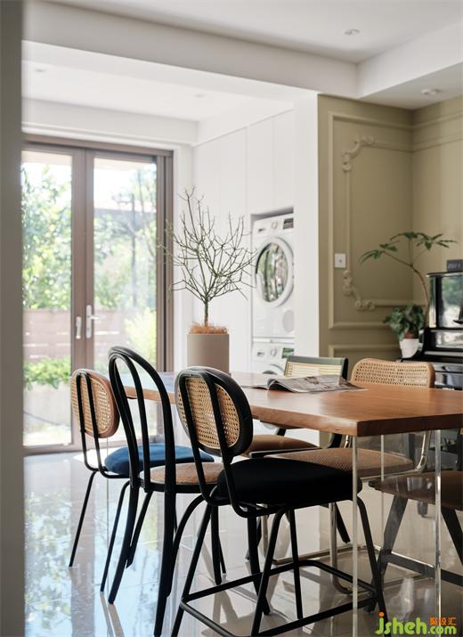 餐廳區(qū)域集合了業(yè)主最喜歡的家具,亞克力的餐桌顯得極為輕薄,搭配形態(tài)各異的餐椅,蘇州裝修設(shè)計(jì)以及簡約經(jīng)典的木質(zhì)邊柜,在優(yōu)美石膏線的點(diǎn)綴下有著藝術(shù)的美感,精神的世界得到慰藉。