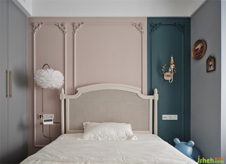 女兒房簡單可愛,滿滿的少女風,床頭使用嫩粉和墨綠的拼色,裝飾角花、石膏線條,復古優(yōu)雅。蘇州裝修設(shè)計床頭的羽毛落地燈可以做裝飾也可以當做邊幾,是實用與美觀的結(jié)合,業(yè)主家中有很多這樣很有心的小物件,是一位很細心的生活家。