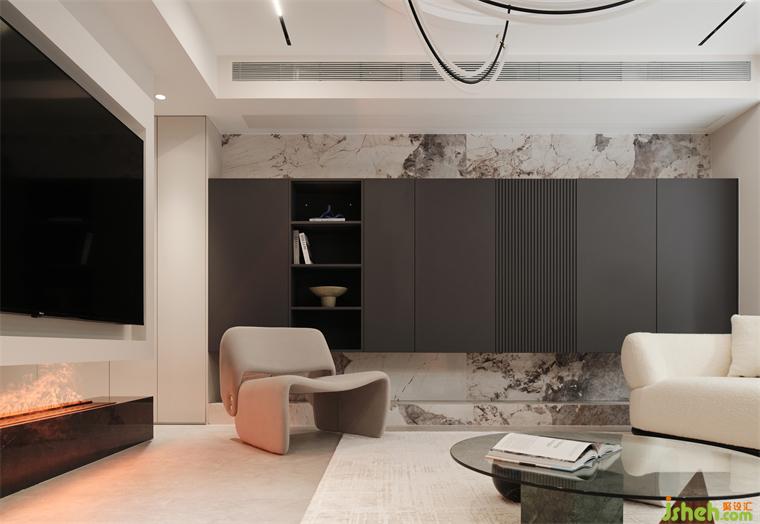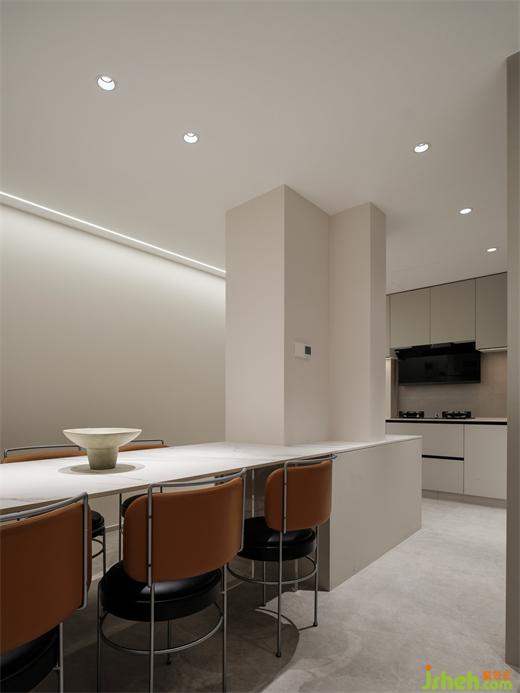 復(fù)式裝修設(shè)計憑借天然石紋的恢宏氣韻,傳遞天地靈氣,疊層暗色收納柜,巧妙糅合了視覺層次美感與實用功能需求,助力培養(yǎng)紛繁多樣的生活儀式感。By virtue of the magnificent charm of natural stone, it conveys the aura of heaven and earth. The stacked dark storage cabinet cleverly blends the aesthetic feeling of visual level and practical functional needs, helping to cultivate the diversified sense of life ritual.