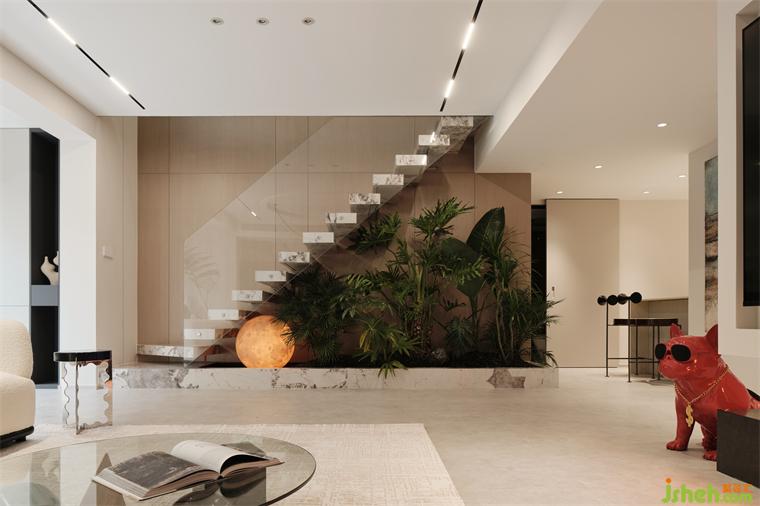 復(fù)式裝修設(shè)計在硬朗輪廓之內(nèi),描摹曲線的柔美感、流動感與親切感,給予鮮亮元素揮灑活力的動機,總在不經(jīng)意的轉(zhuǎn)角處或者諸多的細節(jié)中,捕獲每日的驚喜。In the strong outline, it depicts the soft feeling, flowing feeling and intimacy of curves, giving bright elements the motivation to exert vitality, and always capturing daily surprises in casual corners or many details.