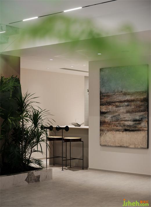 考量天花轉(zhuǎn)折面的特征,置入階梯場景,契合起伏相似的節(jié)奏感,種一排樹,置一個球,讓浪漫的意境再造自然風(fēng)情,烘托出吧臺的慵懶氛圍。Consider the characteristics of the ceiling turning surface, place the ladder scene, fit the undulation similar sense of rhythm, plant a row of trees, set a ball, so that the romantic mood to recreate the natural style, foil the lazy atmosphere of the bar.