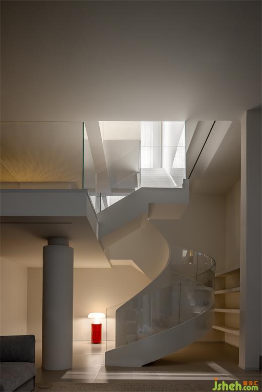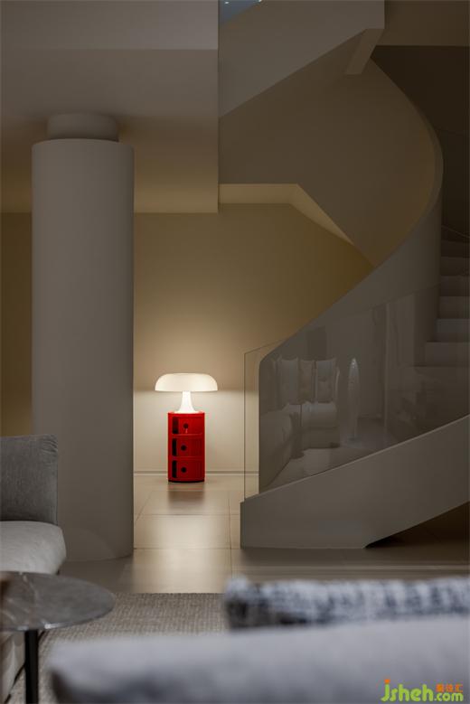 復式設計優(yōu)雅的旋轉(zhuǎn)樓梯則猶如一件精心雕琢的藝術品,矗立于空間之中,運用玻璃材質(zhì),不僅維持了整體美感,更讓光線能夠自由穿梭,為空間注入靈動氣息。