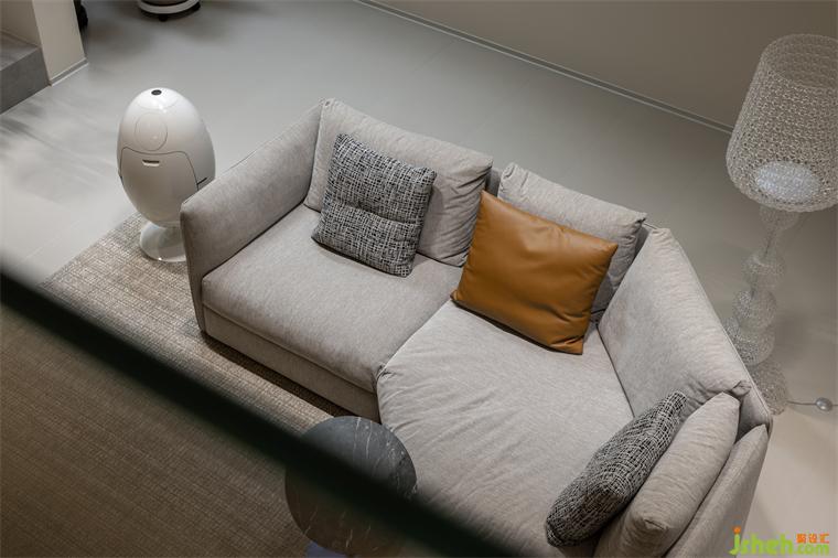 復式設計傳統(tǒng)的電視不再是視覺中心,布局以促進家人的互動為核心,沙發(fā)柔軟,燈光溫馨,氛圍舒適而自在。這樣不僅讓孩子有了足夠?qū)挸ǖ幕顒涌臻g,同時也能滿足個人獨處時的需求。