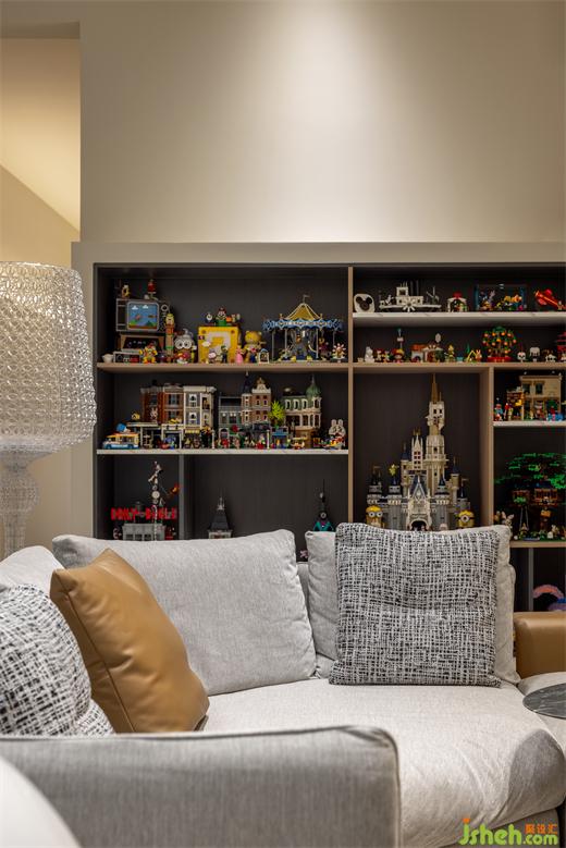 墻面精心定制的專屬柜體,將樂高、積木與精致手辦有序陳列,每一格都承載著屋主的獨特品味與珍藏。在這個屬于自己的小天地里,他們深覺找到了一種無法言喻的歸屬感。