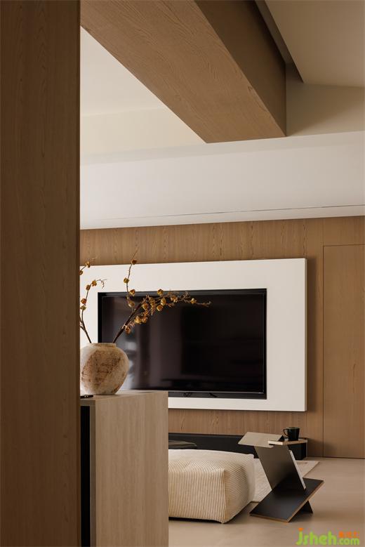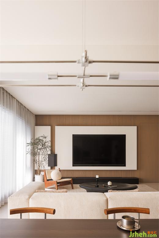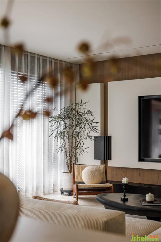 本案大平層設計以簡約原木為筆,勾勒一家人心中的寧靜港灣。木與白交織,放眼望去,空間呈現(xiàn)出一種非常恬靜舒適的狀態(tài)。