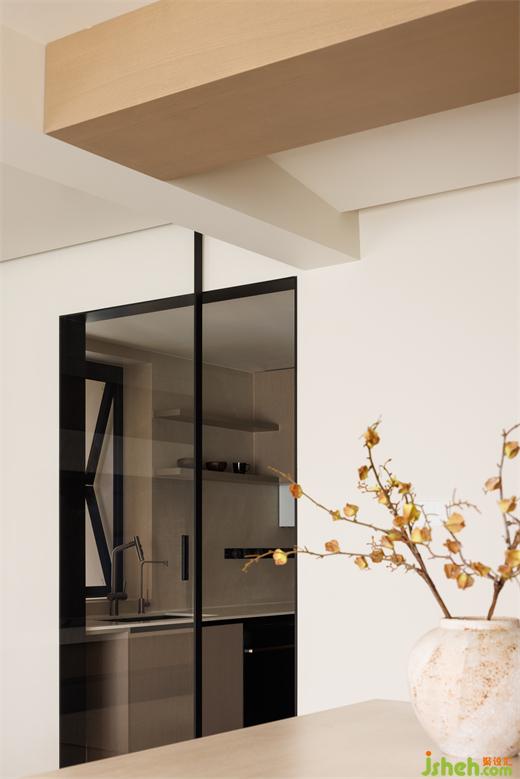 細(xì)框玻璃門將烹飪空間與外界分隔,經(jīng)典黑色線條與大面積透明玻璃結(jié)構(gòu)擁有極簡(jiǎn)的視覺元素,在空間中創(chuàng)造驚艷且深刻的美學(xué)表達(dá)。