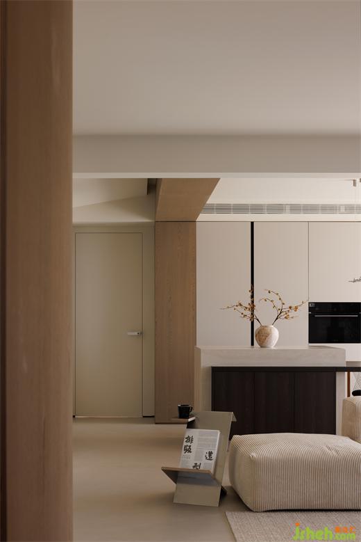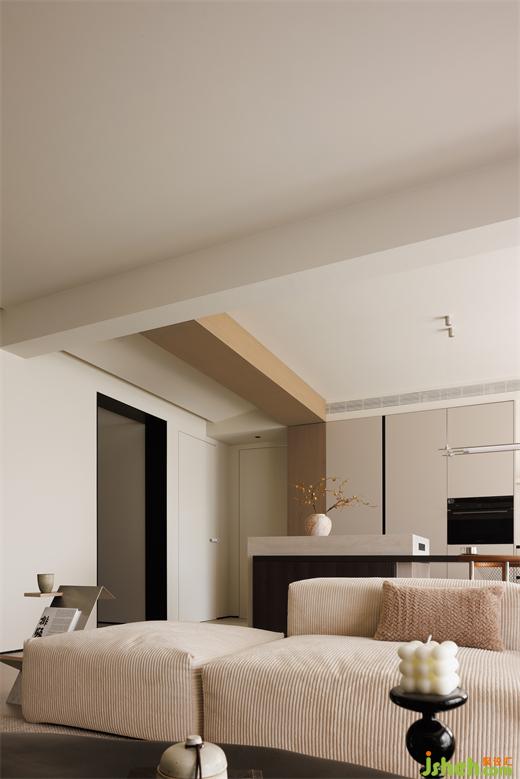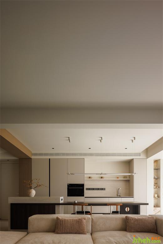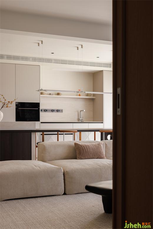 廚房在客廳一側(cè),于開放式的空間中梳理出流暢的行走動(dòng)線,提高了家的自由度。