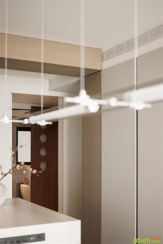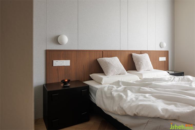 大平層設(shè)計主臥同樣使用暖白與原木的組合,打造一種細(xì)膩而親密的體驗感,讓每一天的開始與結(jié)束都沉浸在寧靜的氛圍中。