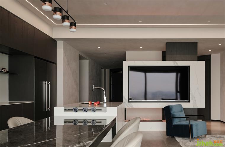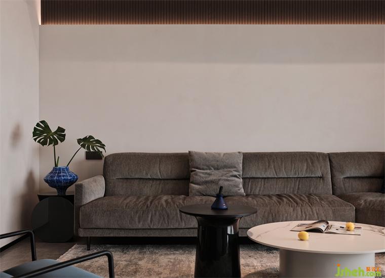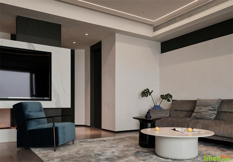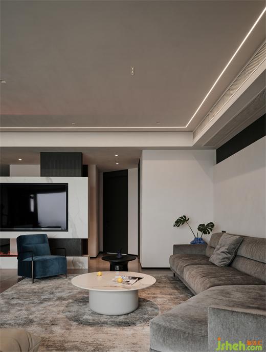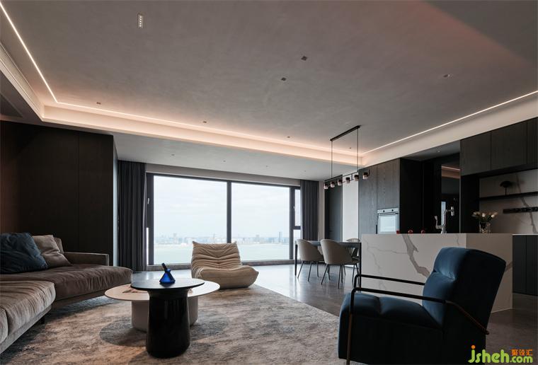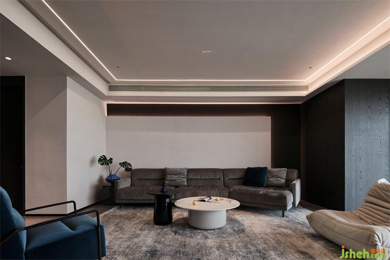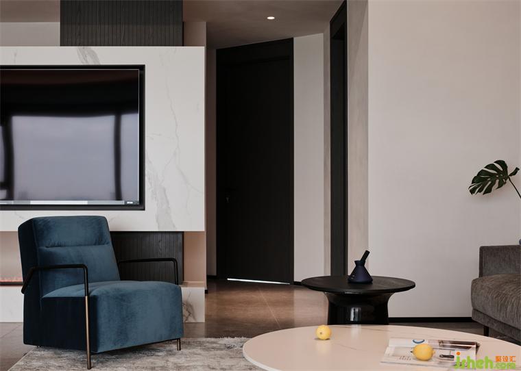 深灰沙發(fā)、藍色單椅、柔軟的地毯......軟裝物件的組合打造柔和的微妙觸感,豪宅設(shè)計提升整體空間品質(zhì)和精致細節(jié),用以幫助居住者完成情緒的釋放,讓心靈得以棲息。