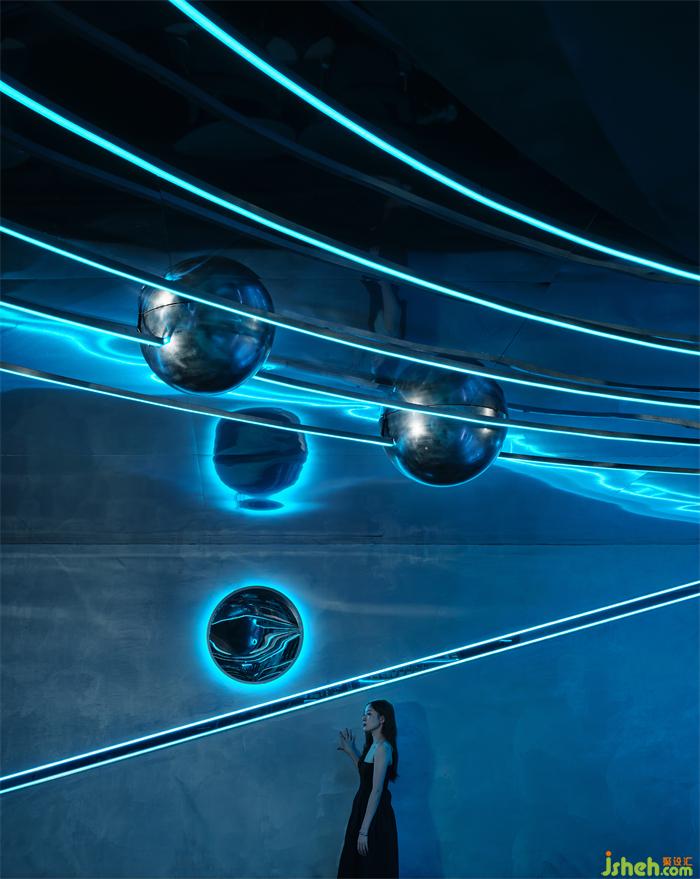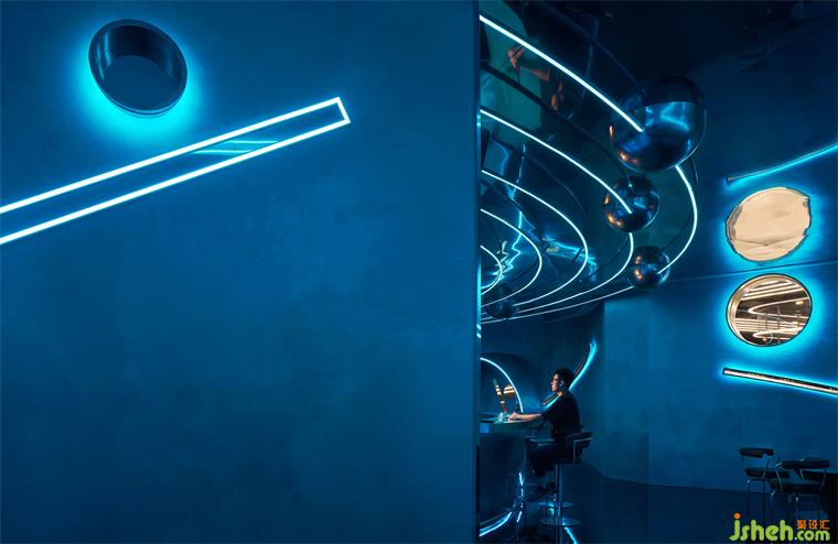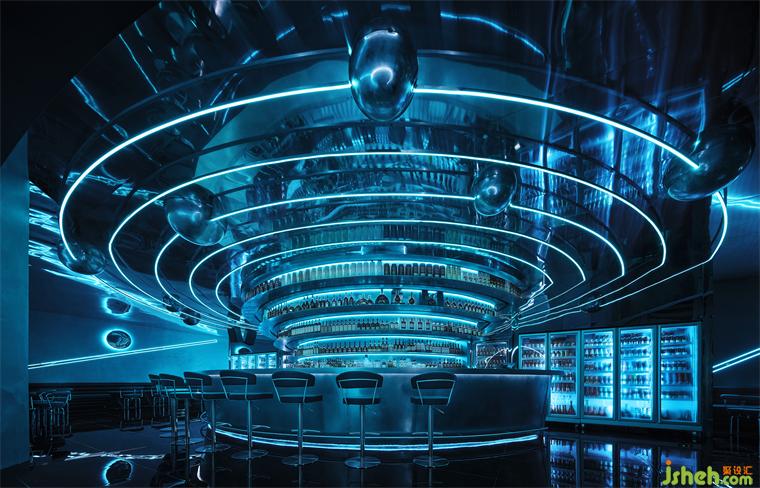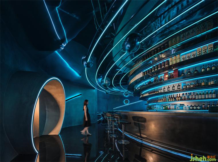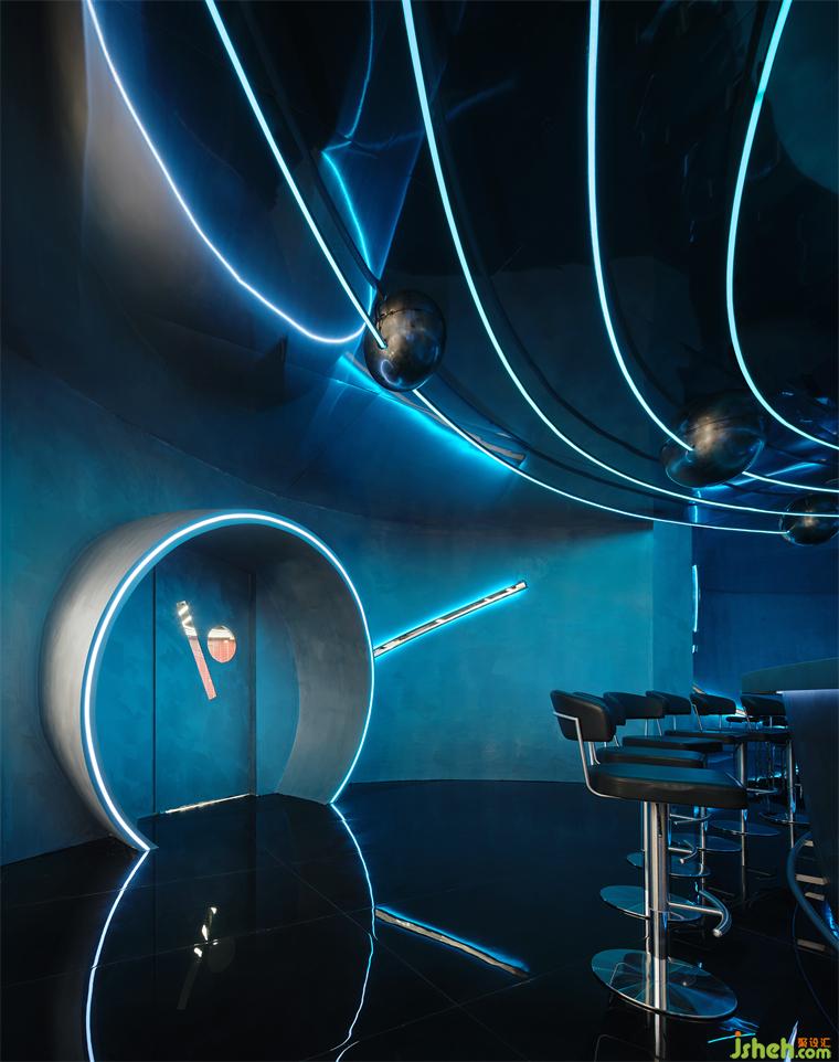 本案坐落在蘇州園區(qū)奧體中心,在做方案前我們考慮“人在夜晚喝著小酒需要怎樣的空間”,安靜?靜謐?喧鬧?本次裝修設(shè)計(jì)我們想呈現(xiàn)的有關(guān)未來(lái),幻想人進(jìn)入太空會(huì)是什么樣。裝修設(shè)計(jì)太空的屬性是神秘的,是科技的,也是一種空域的狀態(tài),也許在未來(lái)每個(gè)人都能實(shí)現(xiàn)“太空漫游”。