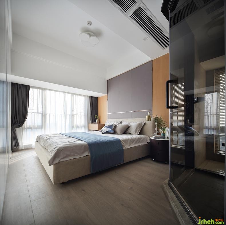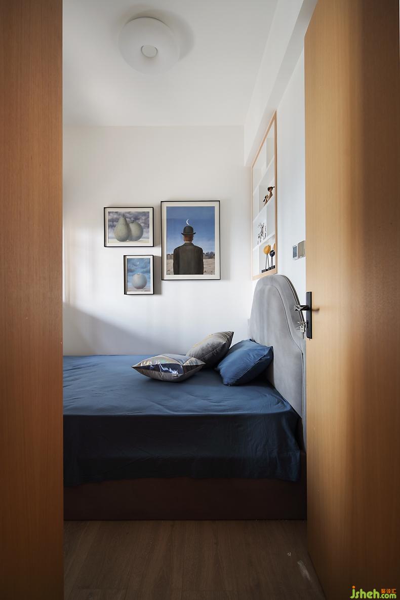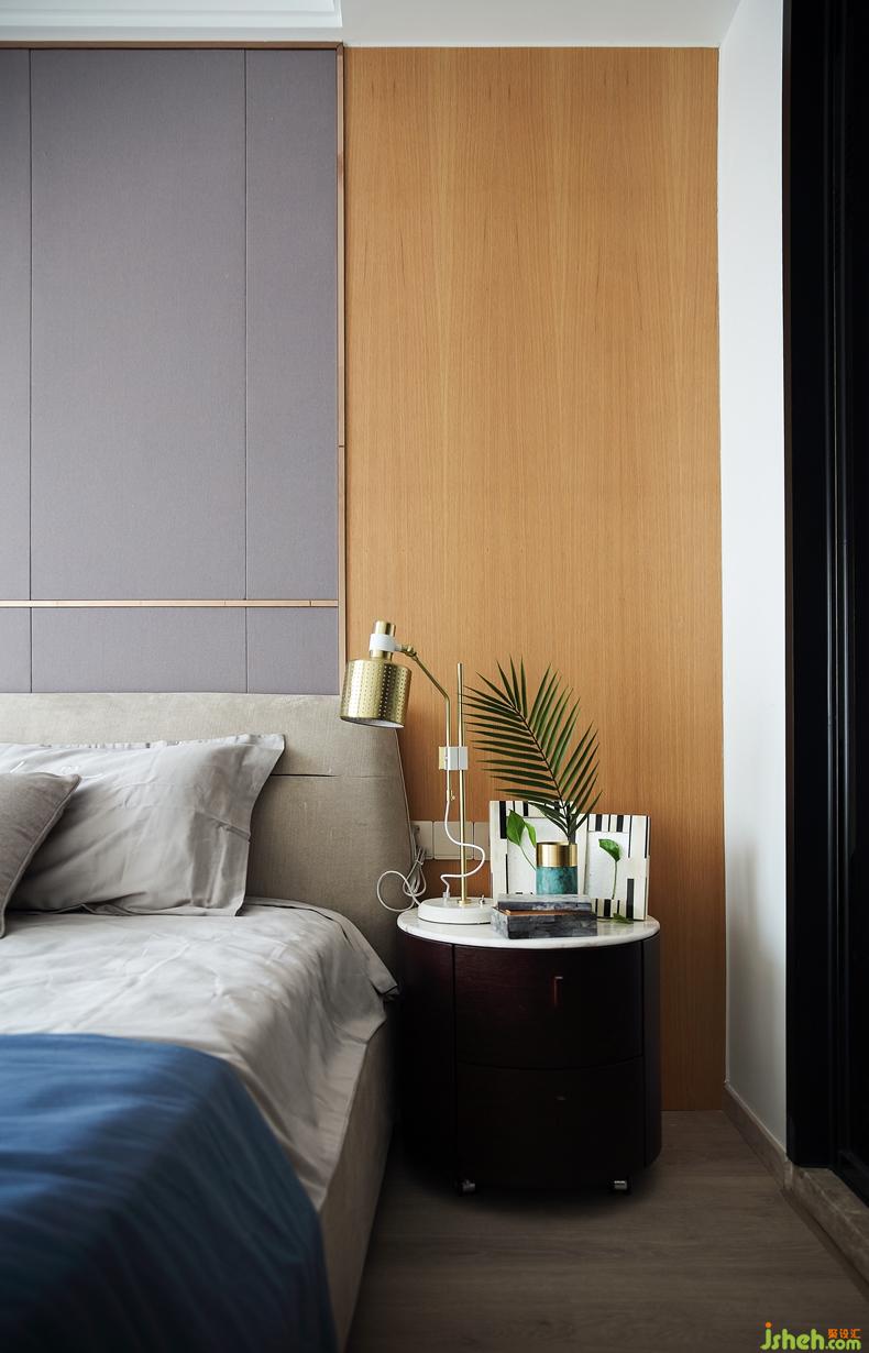 臥室以暖色調(diào)為主,靈活運(yùn)用木色、暖灰和藍(lán)色的搭配,打造了一個(gè)溫馨助眠的空間。