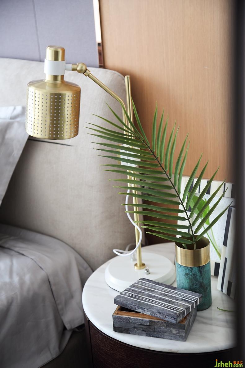 床頭燈的金屬光澤和綠植交相呼應(yīng),自然而驚艷,仿佛生活處處充滿了小驚喜。
